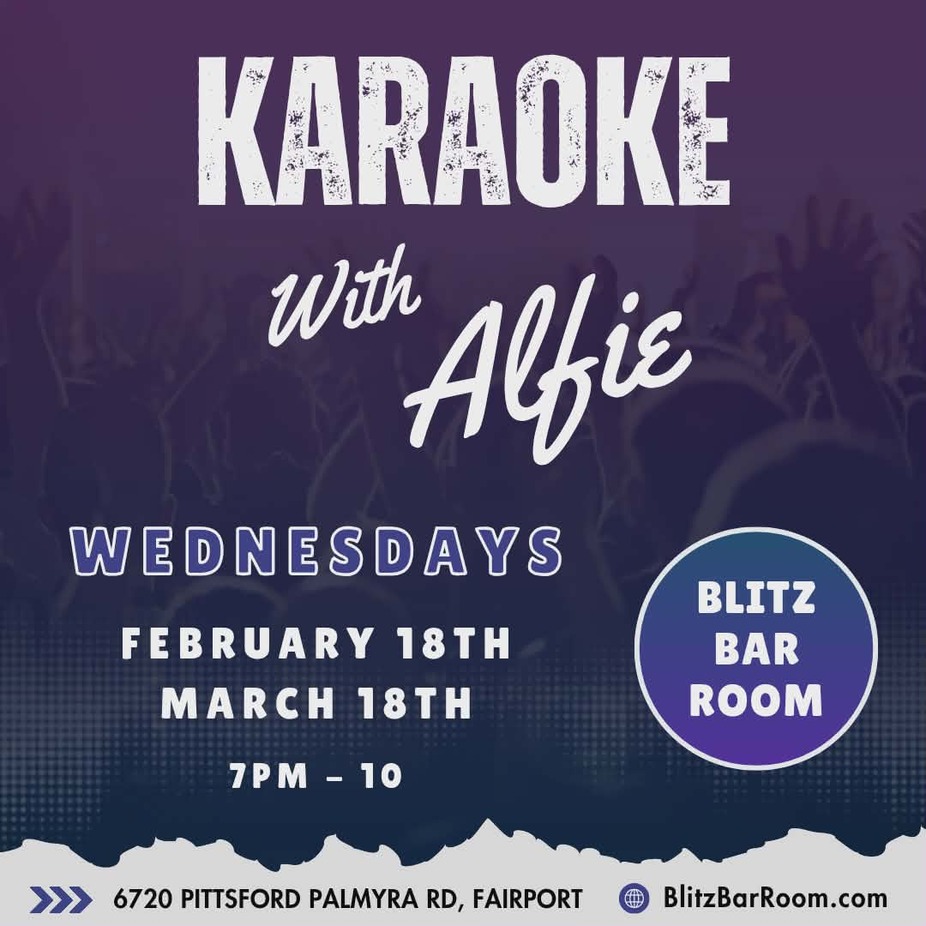 Back by popular demand, Karaoke with Alfie returns to the Blitz. Why not stop into the Blitz Bar Room to see Alfie and be a star, or even listen to some of Fairport's best singers light up the stage. You don't want to miss it. Let's make it a party, as always!